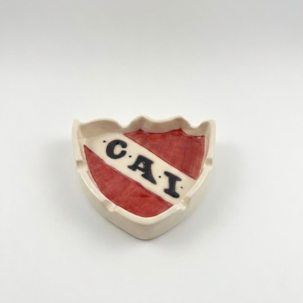 Cenicero artesanal de cerámica con el escudo de CAI. Un detalle único y resistente, perfecto para lucir en el living o el quincho mientras esperas el próximo partido, hecho y pintado a mano, fácil de limpiar.