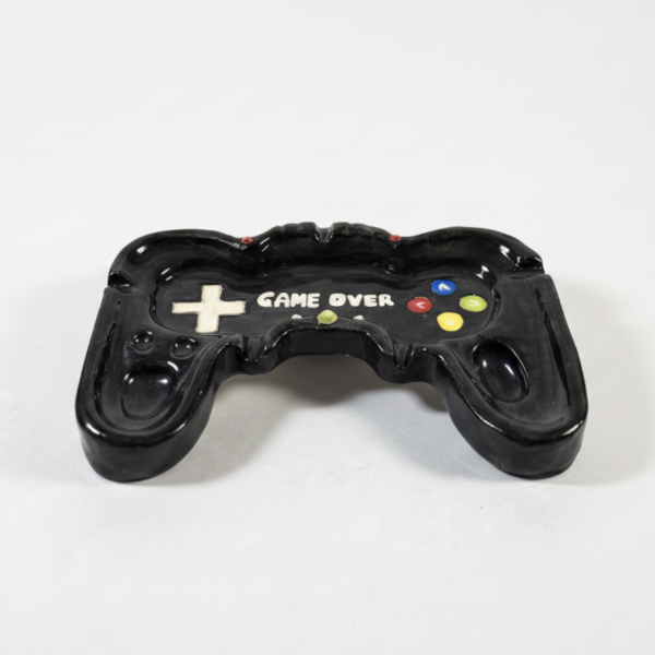 Este cenicero artesanal hecho a mano de cerámica con forma de joystick clásico es la pieza de diseño definitiva para tu living. Con un acabado negro brillante y detalles a color.