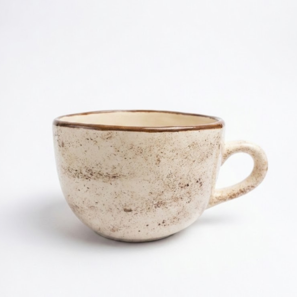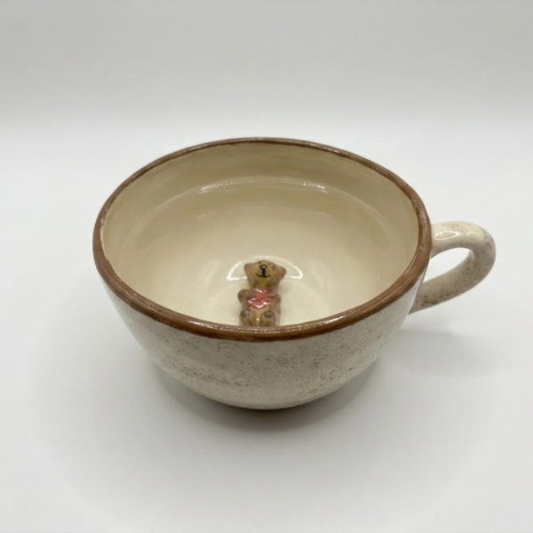 Un tazón de estilo artesanal. A medida que disfrutas de tu bebida favorita, un tierno amiguito irá apareciendo en el fondo para acompañarte